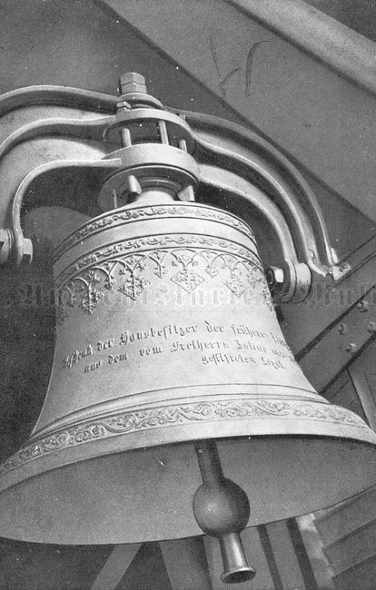 | sonstige Infos: | 1917 hatte Mulda 3 Kirchenglocken, die 1887 durch Albert Bierling in Dresden gegossen wurden. Gewicht / Durchmesser / Ton: 660, 348, 208 kg / 110, 88, 73 cm / fis, ais, cis Die Inschrift der mittleren Glocke (siehe Karte) lautete: "Geschenk der Hausbesitzer der früheren Rittergutsgemeinde aus dem vom Freiherrn Julius von Könneritz gestifteten Legat" Nach Anordnung der königlichen Amtshauptmannschaft Freiberg mussten die große und die mittlere Glocke bis zum 30.6.1917 an eine Sammelstelle in Oberschaar abgegeben werden. Die Glocken wurden zur Rohstoffgewinnung für die Rüstungsindustrie des 1. Weltkriegs eingeschmolzen. |